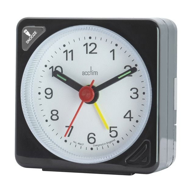 Acctim CK2020 Analogue Alarm Clocks, Black With White Face Snooze Light Crescendo Alarm Battery Powe