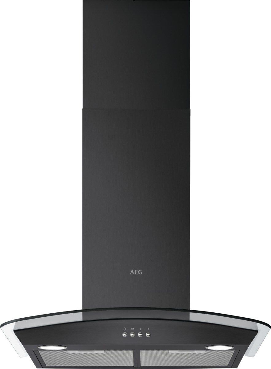 AEG DTX3640B 60cm Curved glass chimney Hood. Black and Glass, LED lighting, Charcoal filter available