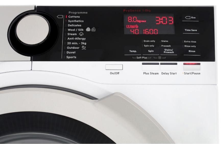 ProSense technology® automatically weighs each load to provide a tailored cycle. Sensors then adjust washing times precisely, ensuring optimum treatment for every garment. Your laundry comes out with that fresh, new feeling every time, plus you save water and energy.