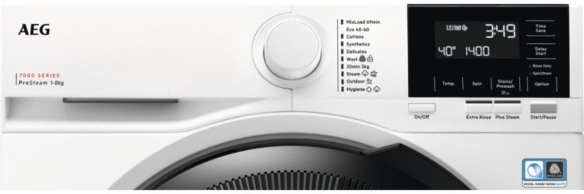 AEG LFR71844B Washing Machine. 7000 Series, Prosteam, 8Kg Wash Capacity, 1400Rpm. Mixload 69 Min,