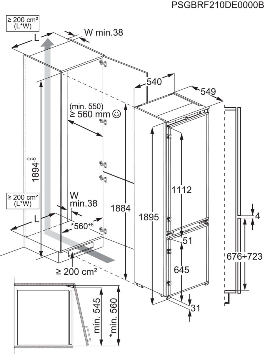Built-in Dimensions (mm) (HxWxD) 1894x560x550
