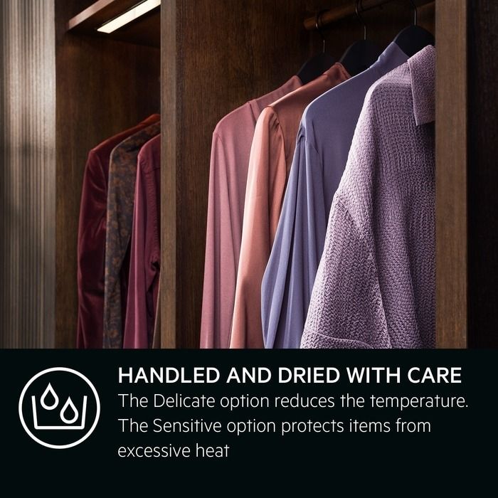 The 7000 SensiDry® Tumble Dryer uses heat pump technology. It dries clothes evenly, at low temperatures, without extending the drying time. Gentle drying ensures items are never subjected to unnecessary heat, so your clothes last longer.