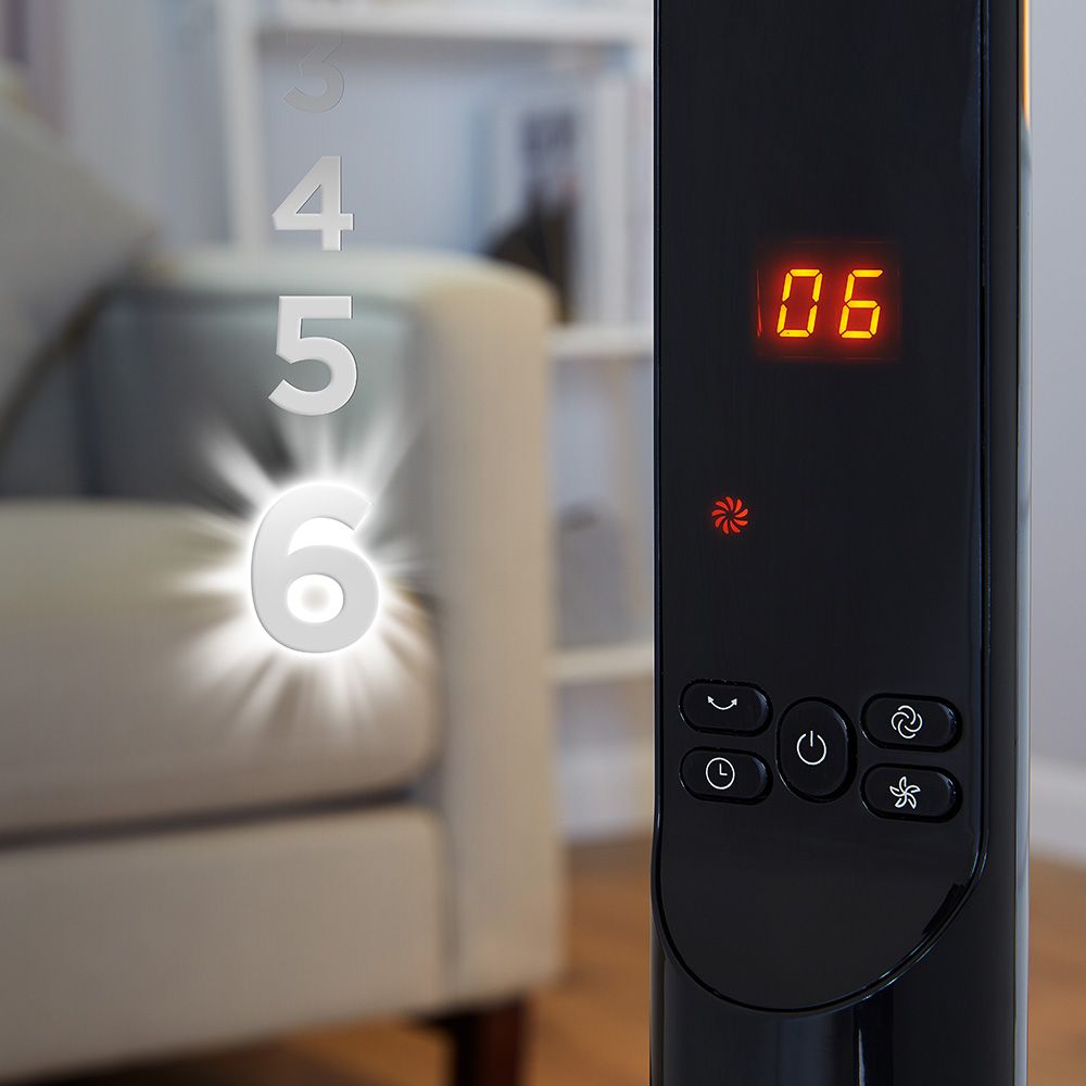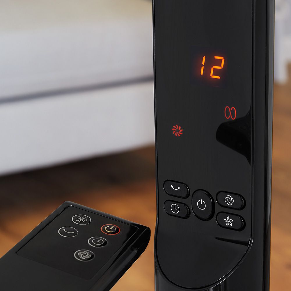 Quickly cool yourself down with the rapid cooling effect of this 16 inch pedestal fan. The durable copper motor provides high quality performance to help cool your home or office. It features a soft touch control panel offers the choice of 6 different speed settings, with figure of 8 rotary oscillation providing air coverage across a wider area to help keep you cool. Its 12 hour timer function allows for convenient scheduling of the cooling cycle. The anti-slip rubber feet provide extra stability on the floor or work surface. The fan is easy to assemble.
