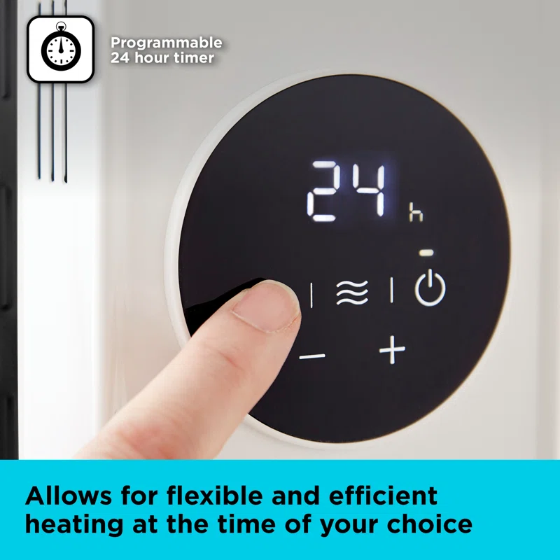 With a robust power of 2300W, it will easily heat up large rooms up to 32m2 in rapid speed, along with three heat settings of 1000W, 1300W and 2300W that are easily adjustable to suit your comfort needs.