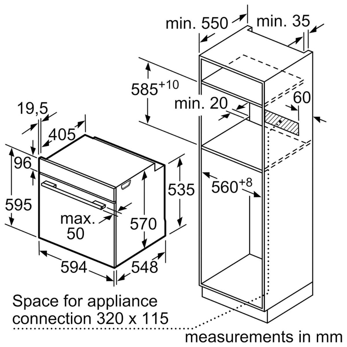 Niche dimension (hxwxd): 585 mm - 595 mm x 560 mm - 568 mm x 550 mm