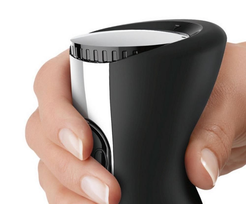 Ergonomic and comfortable blending in style: stainless steel housing with soft touch handle for secure grip