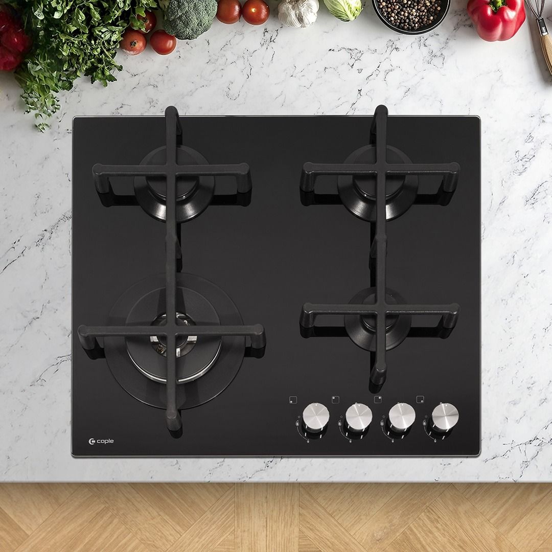 | Product Name : | Caple C7561G 59cm Gas On Glass Hob 4 Burner with Cast Iron Supports - Black |