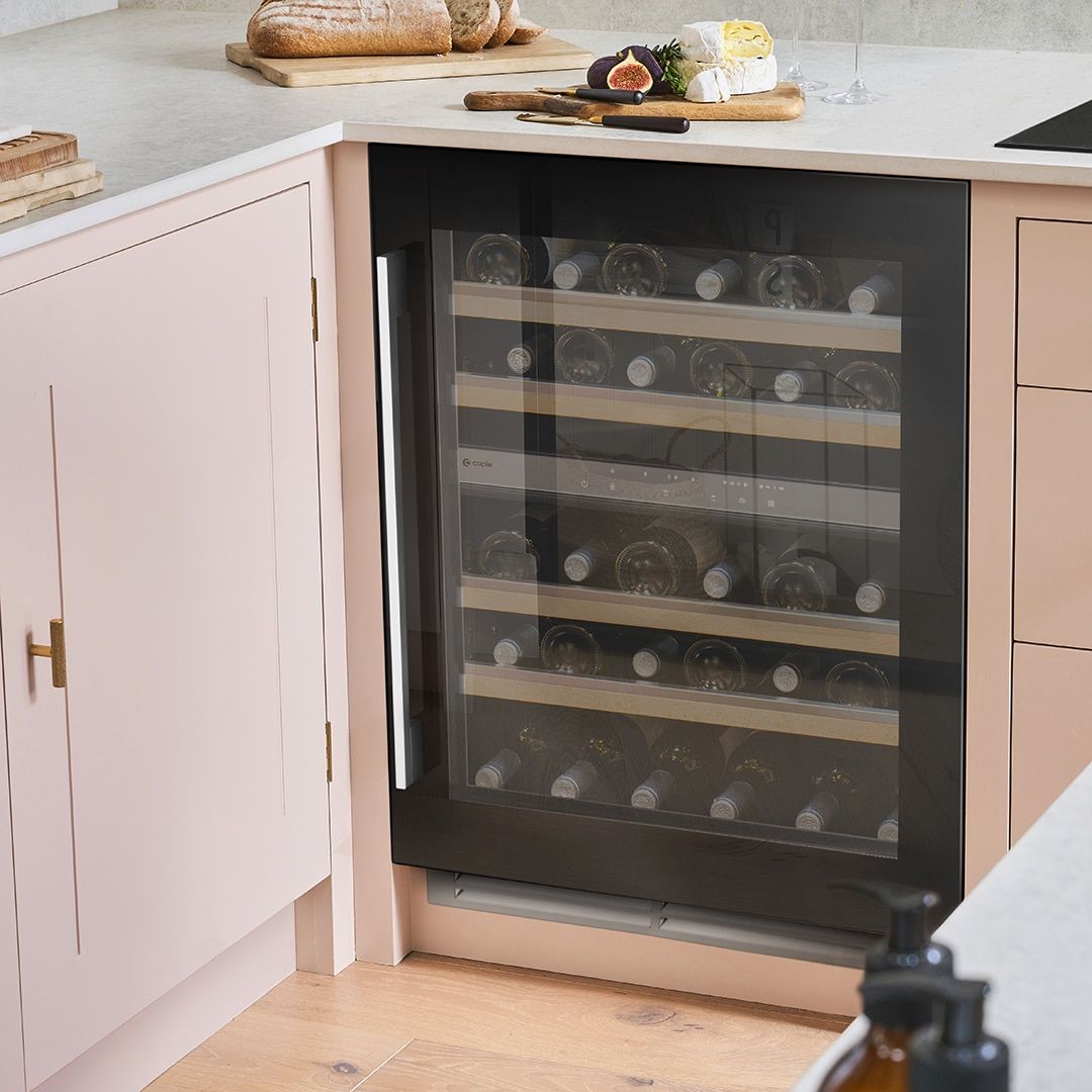 Shelves can accommodate 750ml Bordeaux, Burgundy and Champagne bottles