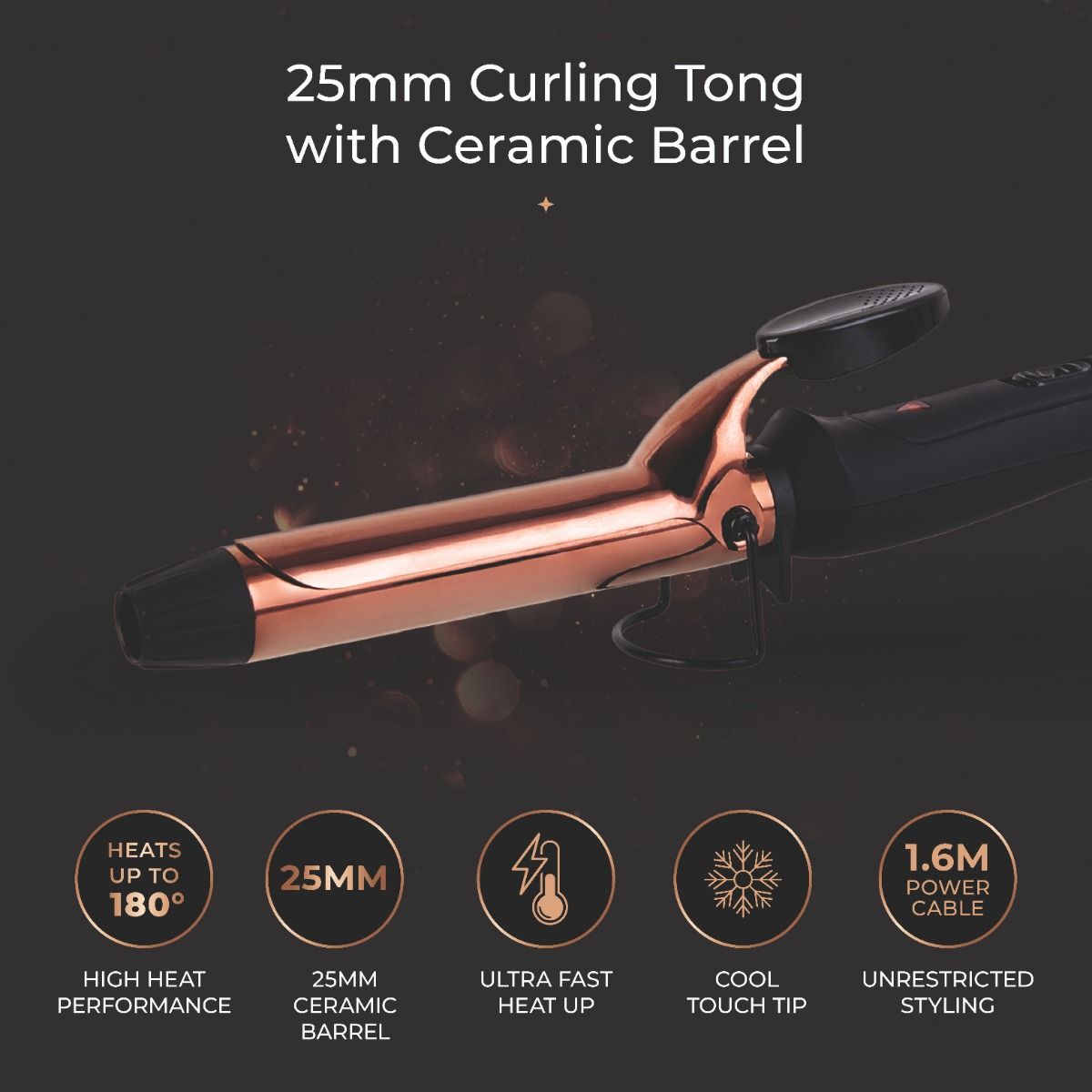 Carmen C81049COP Noir Curling Tong With Ceramic Barrel, 25Mm, Black And Copper