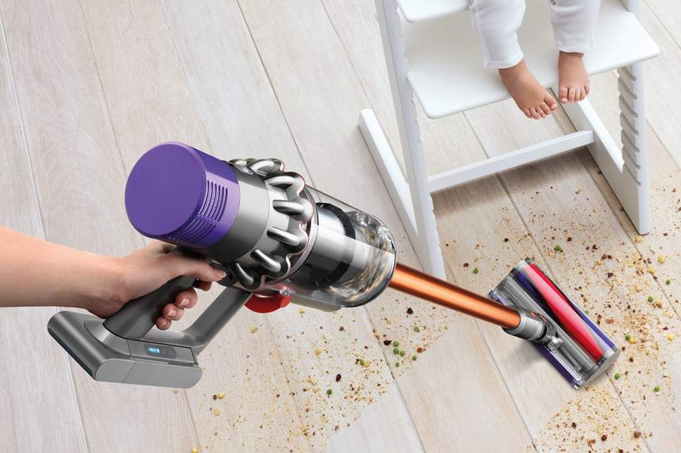 The Dyson V10 Absolute comes with a soft roll cleaner head – made from woven nylon and anti-static carbon fibre – designed specifically for hard floors. This collects both larger debris and finer dust particles at the same time.