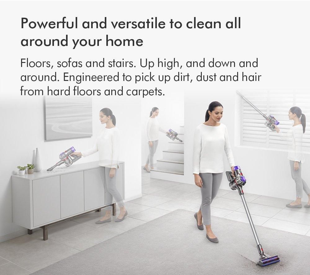With the Dyson V8, it’s like having multiple vacuum cleaners in one. Quickly transform it to reach higher areas or use it as a handheld for those hard-to-reach places. The powerful digital motor spins up to 110,000rpm for fade-free power where you need it. With a 40-minute run time, you’ll have enough time to clean the whole house. And, with a range of tools included, you’ll never miss a spec of dust, dirt, and hair again.