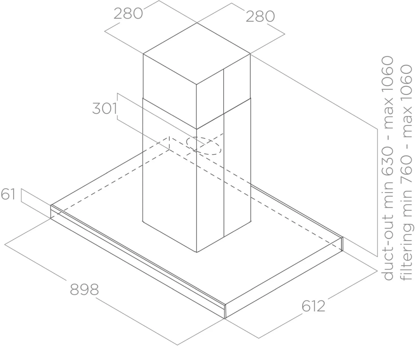 Minimum distance from wall unit induction/radiant hob50cm