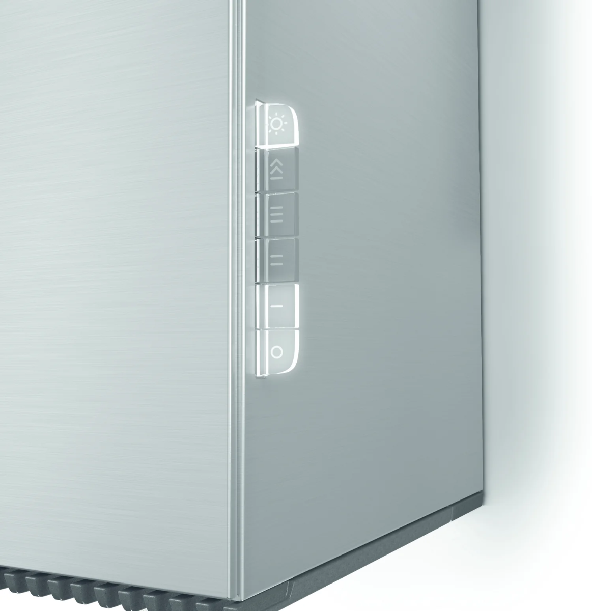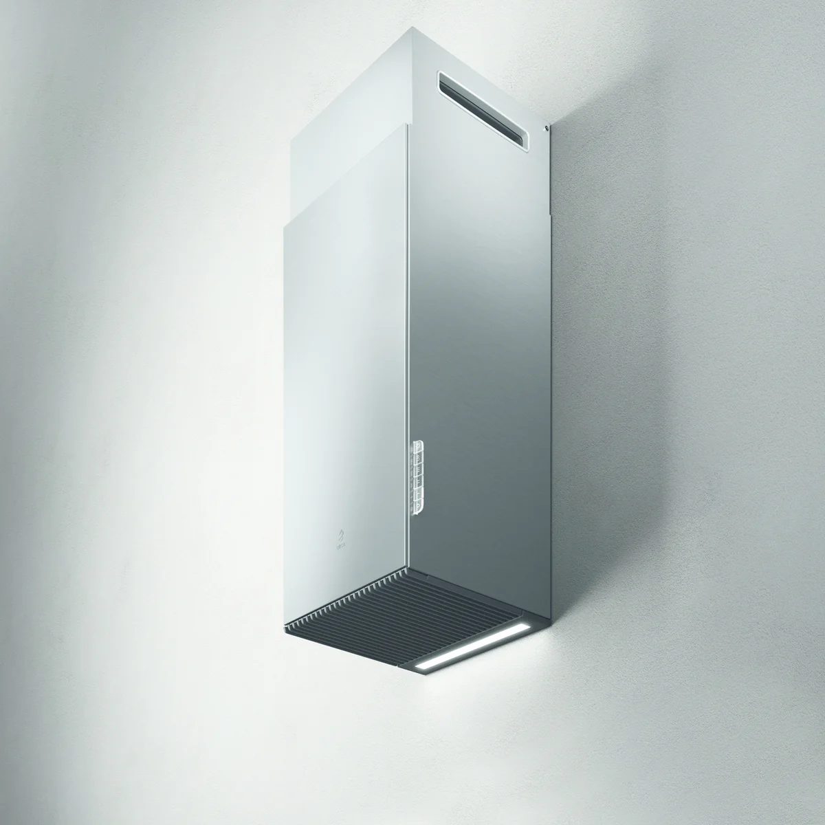 Alignment: perfect. A unique and revolutionary design that combines minimalist lines with cutting-edge materials. The hood body and chimney are perfectly aligned without any breaks, creating a single edge that defines the entire product. Available in various finishes, this hood combines advanced extraction features, extremely silent operation, and energy efficiency, even in the 32 cm model. The regenerable odor filters, lasting up to 3 years, facilitate quick and easy cleaning and maintenance.