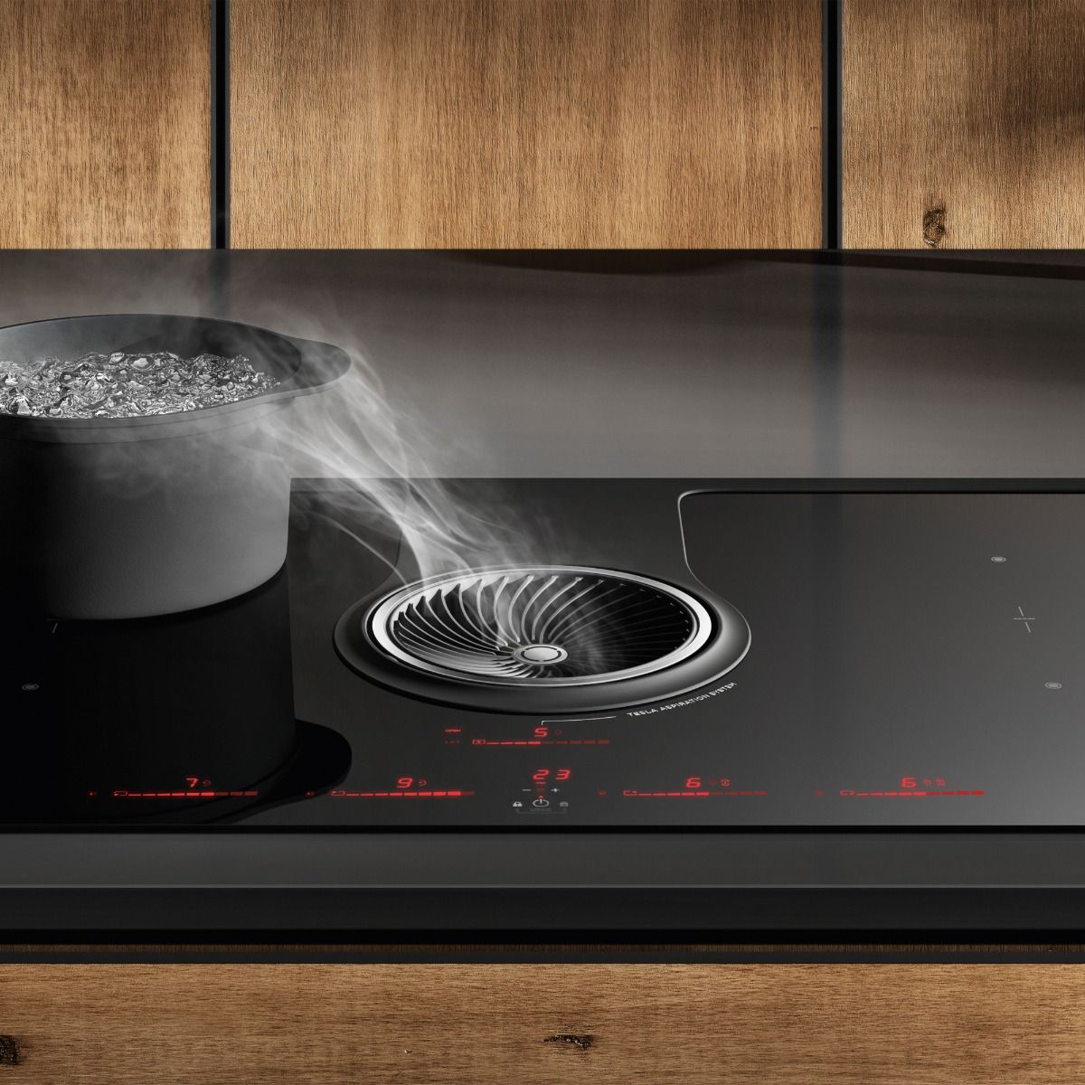 Induction cooking meets extraction: central, powerful, quiet, class A++ rating. And you're ready to cook.