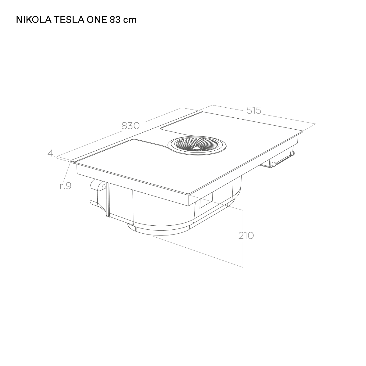 Induction hob, built-in hood, distinctive look. A smart combination of cooking and extraction functions for unparalleled results. The hob features 4 cooking zones, 1 zones for larger pots, temperature control and monitoring, ultra-high performance multi-purpose filters that are easy to remove, valve for draining spills. The distinguished aesthetic of the extraction zone attracts smoke, vapours, and odours. The hood is equipped with odour, grease and moisture filters that can last up to 3 years, reducing environmental impact.