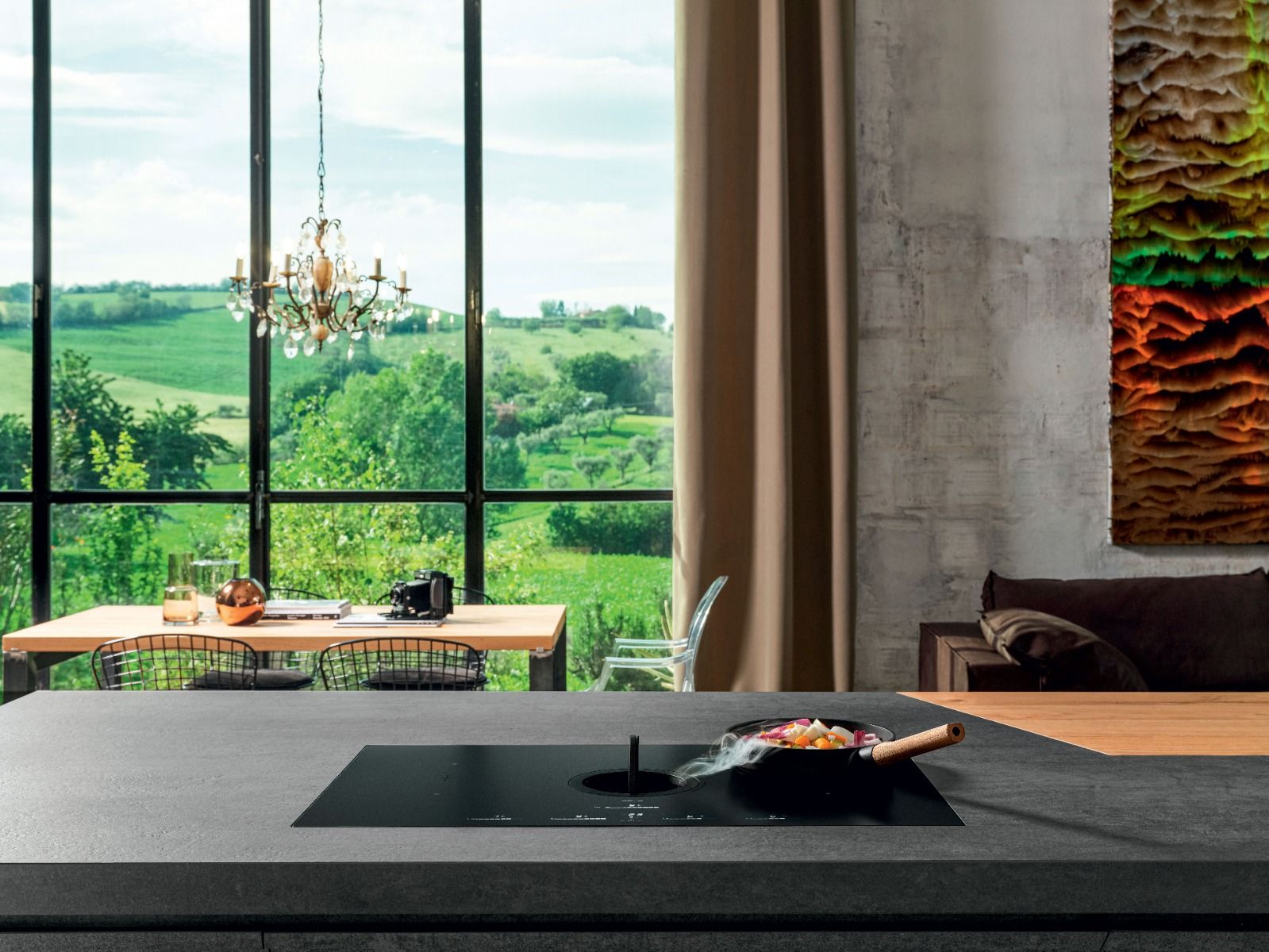 A stunning aesthetic for an extractor hob built to stand the test of time: its matt black glass finish is anti-fingerprint and highly scratch-resistant. With a simple tap, the powerful extraction system eliminates fumes and vapours, so you can focus entirely on cooking. The automatic professional-style cooking features help you achieve perfect results, whether you're making a slow-cooked meal, warming milk or soup, cooking custards and sauces, or keeping pre-made dishes warm. You can also bridge two adjacent cooking zones to cook with larger pots and pans. The extraction core, invisible and silent, works automatically based on the quantity and quality of fumes. The combined grease, odour and moisture filters can last up to 3 years, and also ensure quick and easy maintenance.