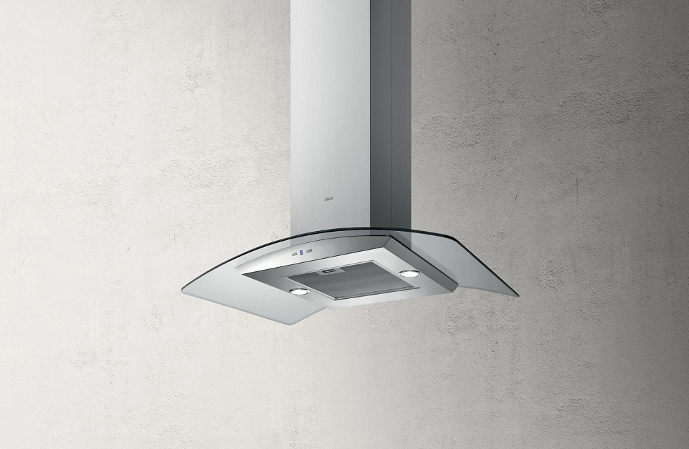 Elica REEF-A-ISLAND 90cm Wide Island Hood - Stainless Steel / Glass - A Rated