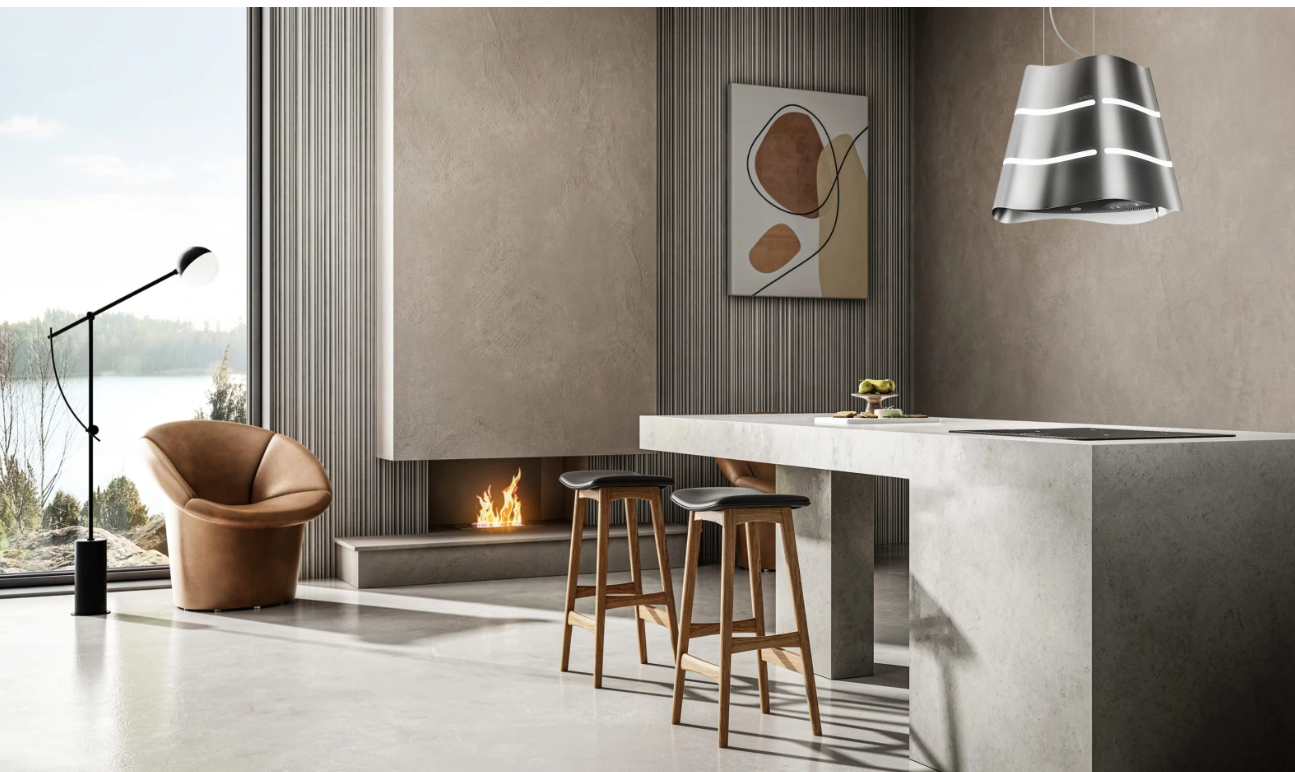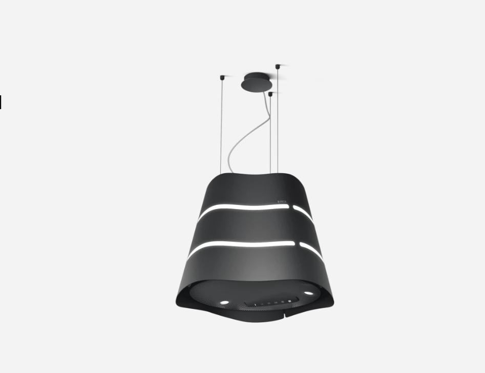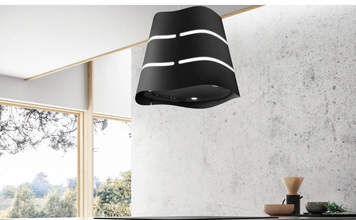 This suspended hood adds an original and bold character to any kitchen. It offers excellent extraction power, bright lighting, and a delay shut-off feature (to get rid of lingering smoke and unwanted odours even after you are done cooking). The filtration efficiency of the odour filters is outstanding, and they can last up to 3 years, reducing environmental impact. An indicator light warns you when it is time to wash, regenerate, or replace them.