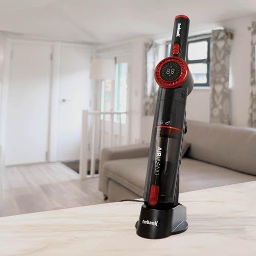The vacuum also comes with a crevice tool and dusting brush, making it ideal for cleaning everything from blinds to keyboards. Its included washable HEPA filter captures even the smallest particles, including hair, making it ideal for homes with pets. The LED digital display provides real-time updates on power settings, battery life, and alerts when it’s time to empty the dust container. Additionally, the AIRWAND includes a countertop charging base that doubles as a convenient storage station for its accessories.