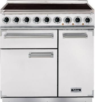 Falcon 82430 900 Deluxe Electric Range Cooker in White withChrome Trim