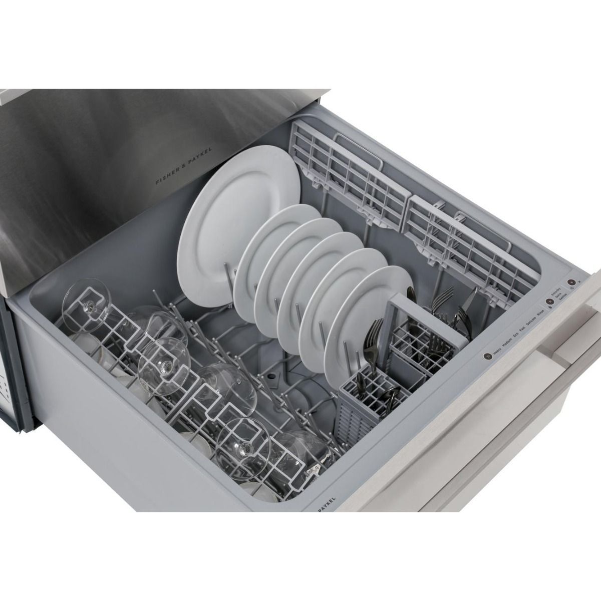 Benefits of the Fisher + Paykel DD60DDFHX9 Built In Dish Drawer Use the Sanitise mode to kill up to 99% of bacteria on dishes during the final rinse Choose your desired wash programme for each drawer Offers a true half load wash for when you only have a few items to clean A quiet and reliable wash thanks to SmartDrive technology Flow through detergent dispenser helps to clean dishes efficiently