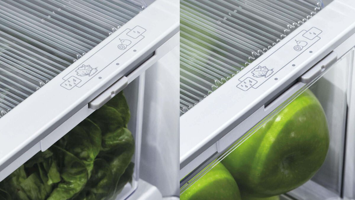 Your fruit and veges need different environments. The humidity control slides in each storage bin create a microclimate that helps keep food fresher for longer.