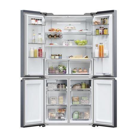 Upgrade your kitchen with the Haier HCR5919EHMB (A) Multi Door Fridge Freezer Cube 90 Series 5. This freestanding fridge features 4 doors for easy access to your favorite foods. Say goodbye to frost build-up with the No Frost technology, while the Li technology ensures efficient cooling.