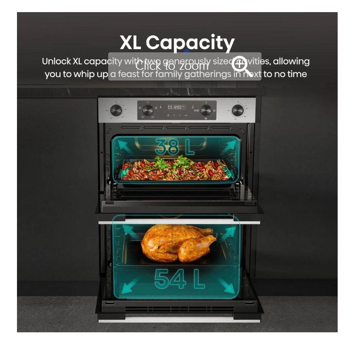 Large double cavity – Offers versatile cooking space