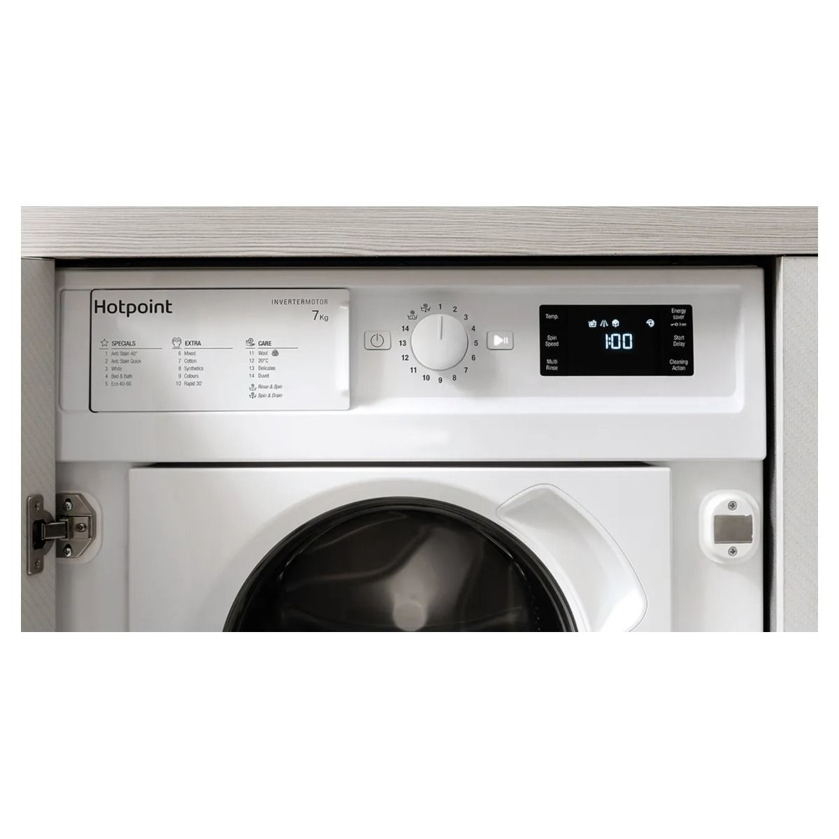 Hotpoint BIWMHG71483UKN Built In 7kg 1400 Washer, D Energy, Antistain 100/ Quick , Big Digital display F160297