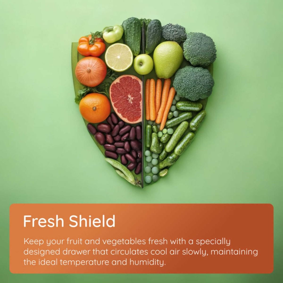 This freestanding Hotpoint fridge freezer offers a 70/30 split between fridge and freezer space, making it a brilliant choice for busy households. With a generous 355L capacity ° enough for 20 shopping bags ° it°s perfect for fitting in your weekly shop with room to spare. Finished in sleek black and featuring an intuitive touchscreen display, it adds a modern, stylish touch to any kitchen. Clever technology works hard behind the scenes to keep your food fresher for longer and help reduce waste. Dual No Frost keeps both the fridge and freezer frost-free thanks to two independent evaporators that circulate air to prevent ice and moisture build-up, meaning you'll never need to spend time defrosting . Plus, the quiet, durable Inverter Compressor quickly restores the perfect temperature when the door is opened, helping maintain freshness while keeping energy bills in check. Inside the fridge, Even Flow technology gently distributes consistent, cool air across every shelf, maintaining a stable temperature that keeps your food crisp and flavourful for up to 30% longer*. In addition, the Fresh Shield compartment slowly circulates cool air to maintain ideal temperature and humidity levels while preventing water droplets from forming - keeping your five-a-day looking and tasting their best for longer**, so you and your family can enjoy nutritious meals every day. The freezer is just as thoughtful, with a Fast Freeze function that rapidly drops the temperature to lock in freshness the moment you unpack your groceries. Even the little details are designed with real life in mind ° like the handy fridge door alarm that lets you know if it's been accidentally left open, preventing any mishaps so your food stays fresh and energy is saved. *Weight loss and sensory evaluation tests used for the determination of shelf life were conducted internally by Beko Corporate on carrot, fresh-cut iceberg lettuce, fresh-cut tomato, strawberry, salami, and kashar cheese samples stored in the EvenFlow refrigerator and control refrigerator (without the EvenFlow technology) for a 12-day period. Actual results may vary based on food type and usage conditions. **According to internal tests conducted by Beko Corporate on fresh lettuce, ProFresh crisper technology can preserve freshness longer compared to standard crisper based on the K70561 cabinet.