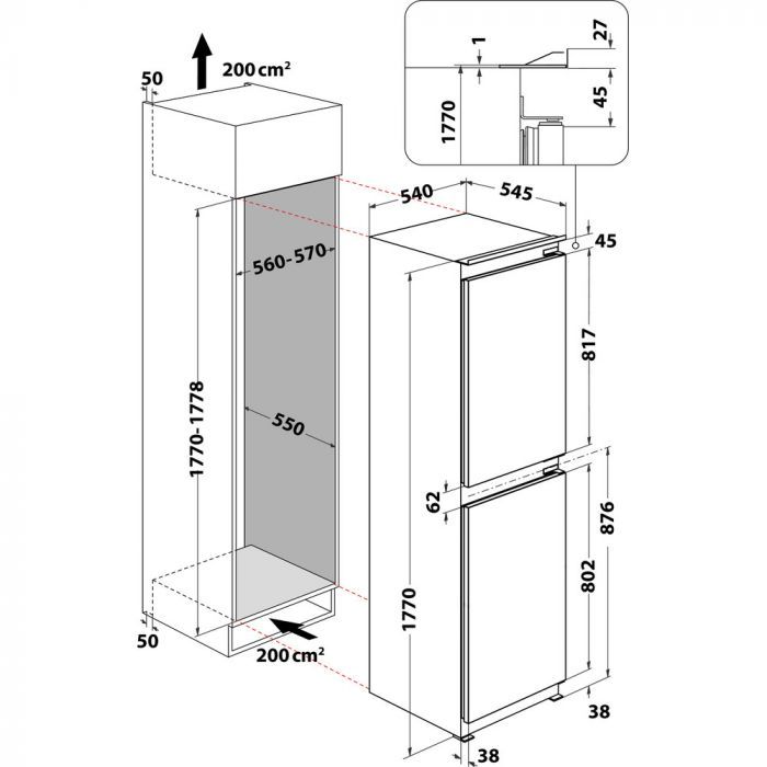 Keep your groceries fresh and organized with the Hotpoint HPKH1262B4UK No Frost 50/50 Integrated Fridge Freezer. With a generous capacity of 254L and a sleek 54cm design, this fridge freezer is perfect for any kitchen. Say goodbye to manual defrosting with the innovative No Frost technology.