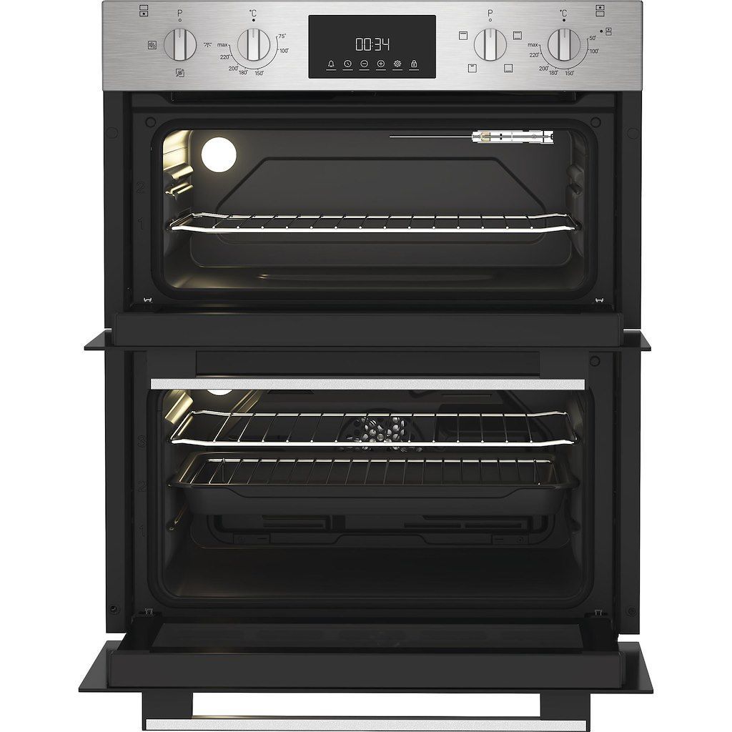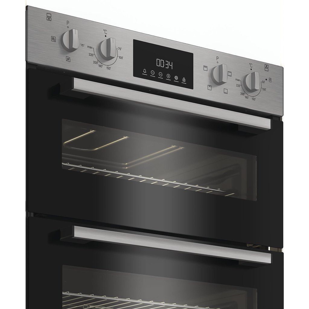 This Indesit built in Double Oven features: an electric solution to perfectly cook your dishes at their best. Intuitive programmable timer.