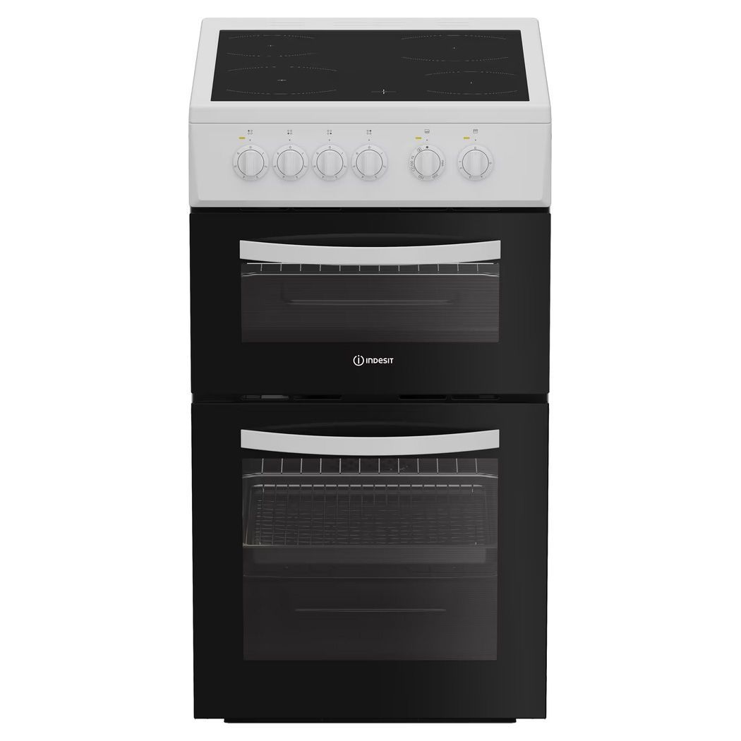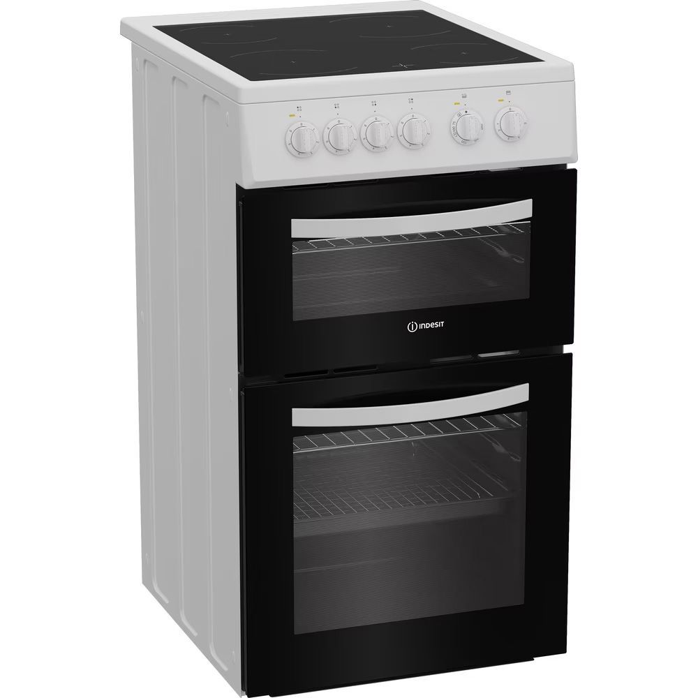 Indesit ITE5VMW Freestanding 50cm Twin Cavity Cooker with Ceramic Hob in White A Rated