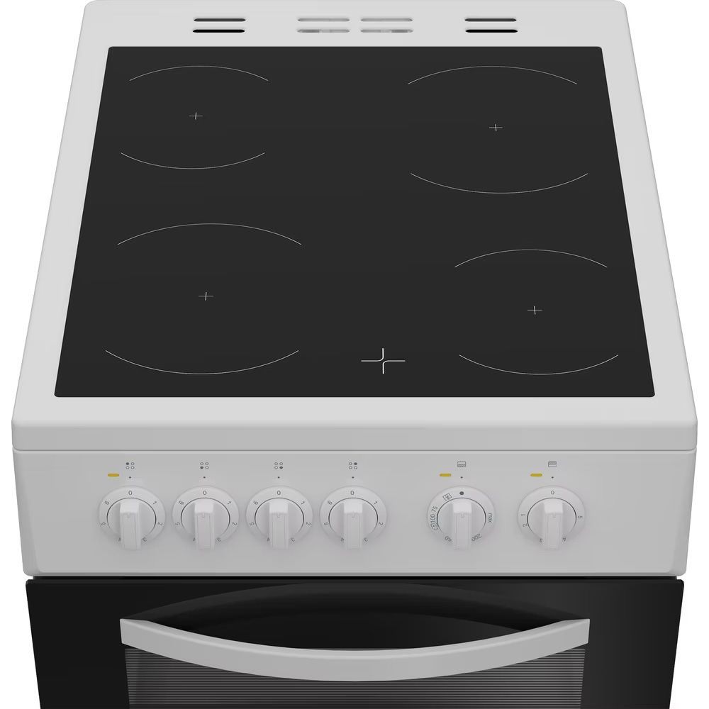 Enjoy making delicious dishes for the whole family with this Indesit freestanding cooker. Finished in classic white, it brings a stylish yet timeless touch to your kitchen. This 50cm cooker is split between a 58L main oven and a top grill compartment, giving you plenty of flexibility to cook all kinds of meals. Plus, the oven light lets you check on your food without opening the door. The ceramic hob features four different-sized zones and adjustable power levels, so you can always find the perfect heat for your dish while saving energy. With an impressive A energy rating, this cooker is as efficient as it is easy to use - perfect for everyday meals.