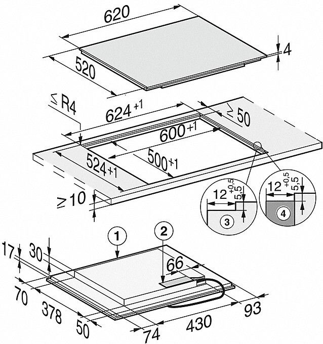 - Std Size Hob 4 Zones-Flexible