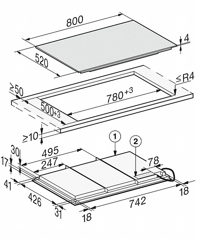 | Residual heat indicator : | Residual heat indicators remain alight whilst hob is still hot |