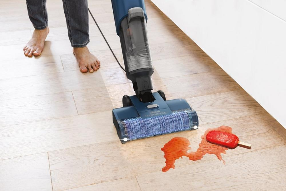 Dropped an egg on the kitchen floor? Spilled a bowl of cereal and milk? No need to worry. Shark HydroVac vacuums and mops at the same time, pulling in wet messes, dirt, debris and grime to leave a clean surface that you can walk on almost immediately.