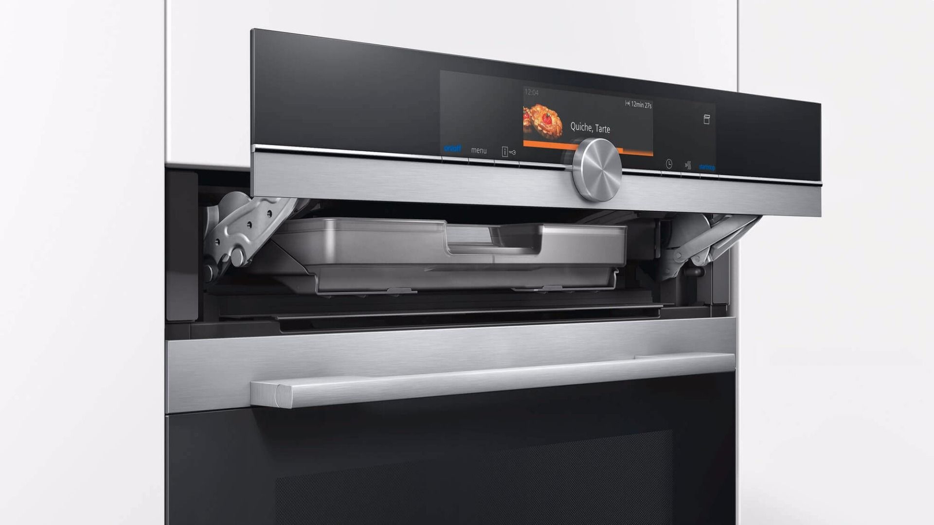 Combi-steam oven with15 cooking functions: 4D Hotair, Hotair eco, conventional oven, conventional heat eco, hot air grilling, full width grill, half width grill, intensive hot air, coolStart, bottom heat, intensive conventional heat, low temperature cooking, keep warm, dehydrate, plate warming Steam functions: reheating, dough proving
