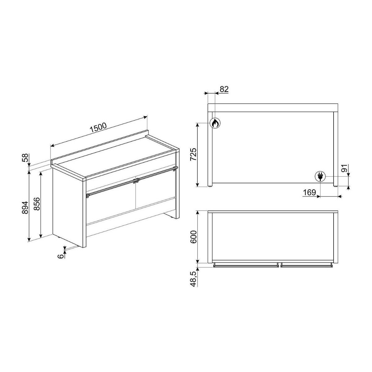 Usable cavity space dimensions (HxWxD): 305 x 613 x 405mm