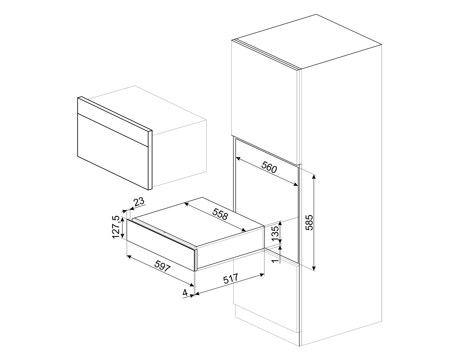 Suitable for fitting directly beneath a 45cm height compact oven. Both items fit in a standard 60cm aperture