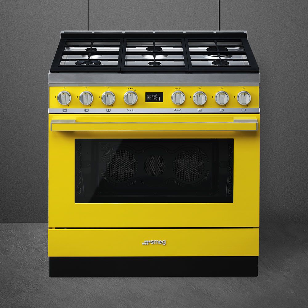 | Product Name : | Smeg CPF9GPYW 90cm Portofino Dual Fuel Range Cooker Yellow |