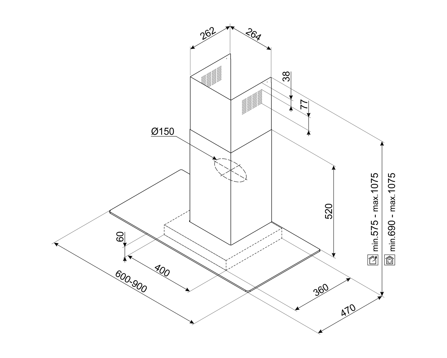 Vent outlet: 150 mm