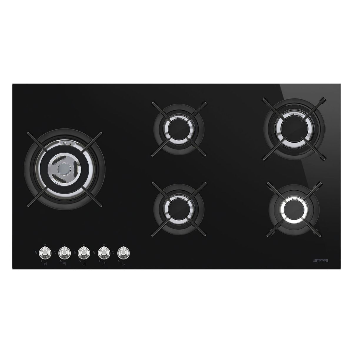 Smeg PV395LCN 90Cm Classic Black Gas On Glass Ceramic 5 Burner Hob