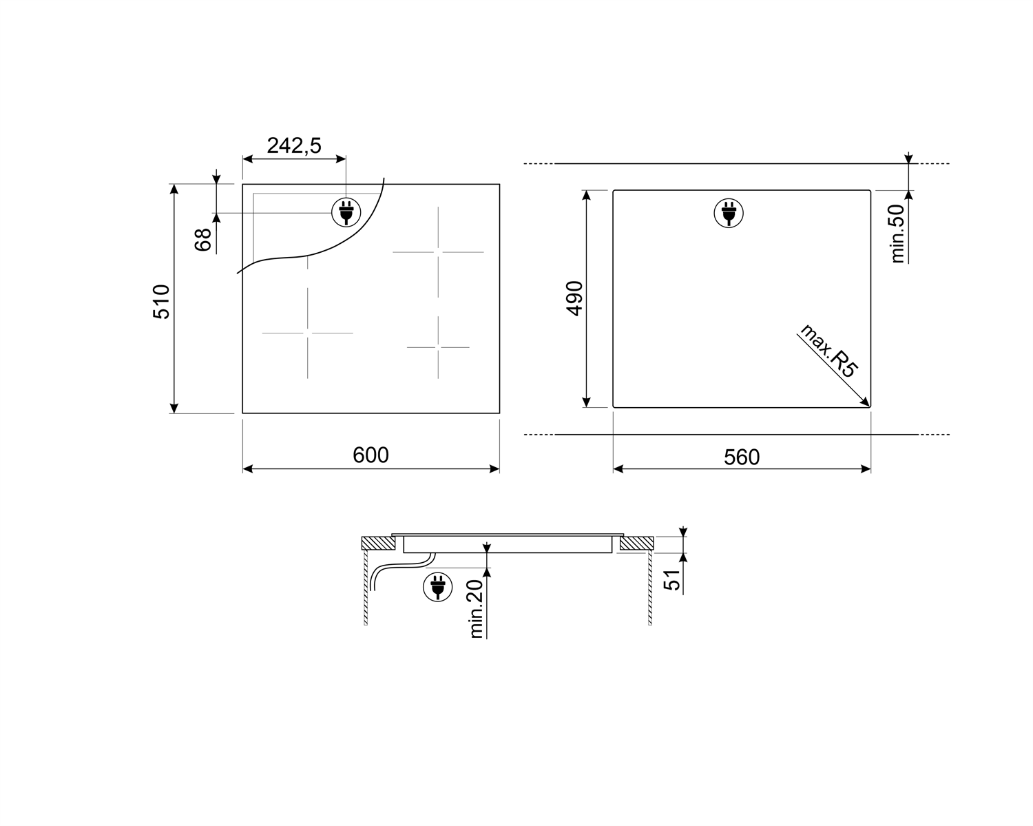Worktop Cut-Out: 490x560 mm