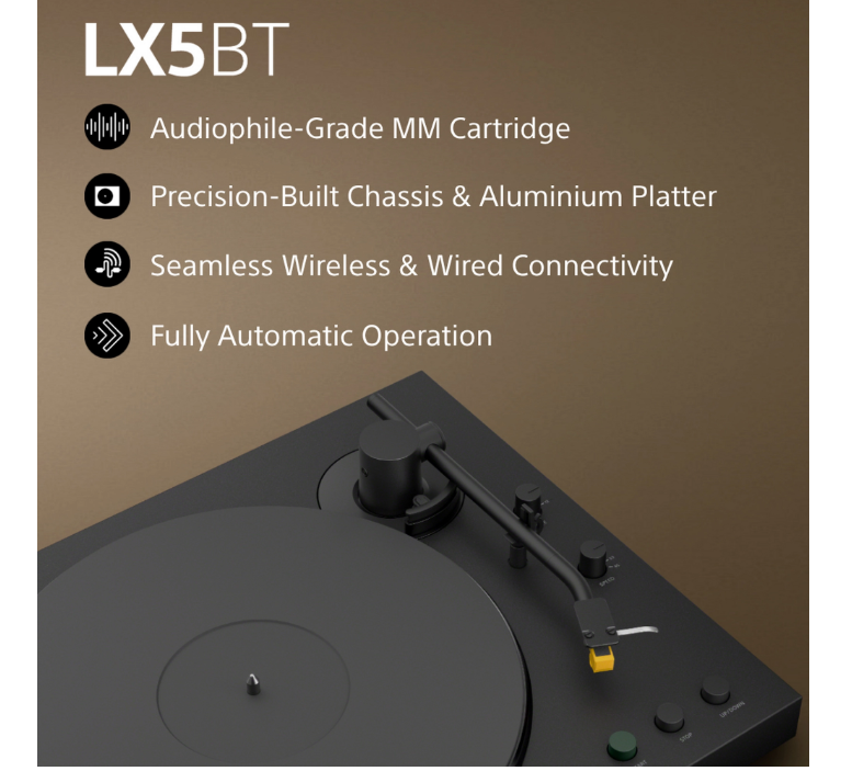 Sony PSLX5BT.CEK Wireless Bluetooth Turntable with Auto Playback - Premium cartridge & Stylus - Pure Black