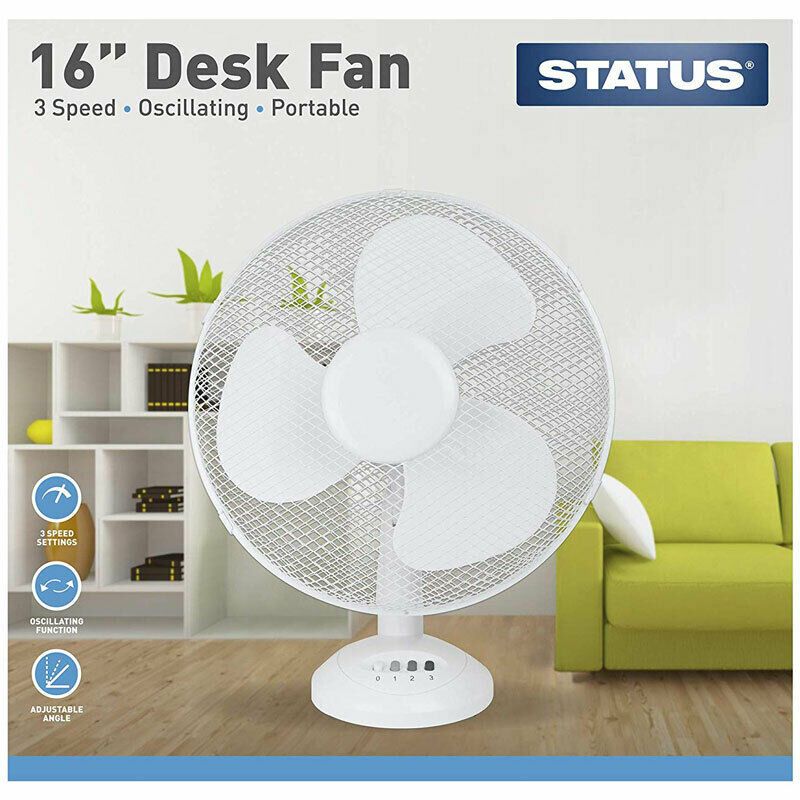 Status International Ltd S16DESKFAN1PKB 16' Desk Fan In White