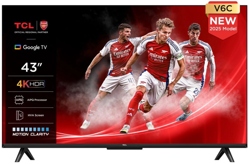 TCL 43V6C-UK 4K Direct LED HDR Google TV In Black F Rated