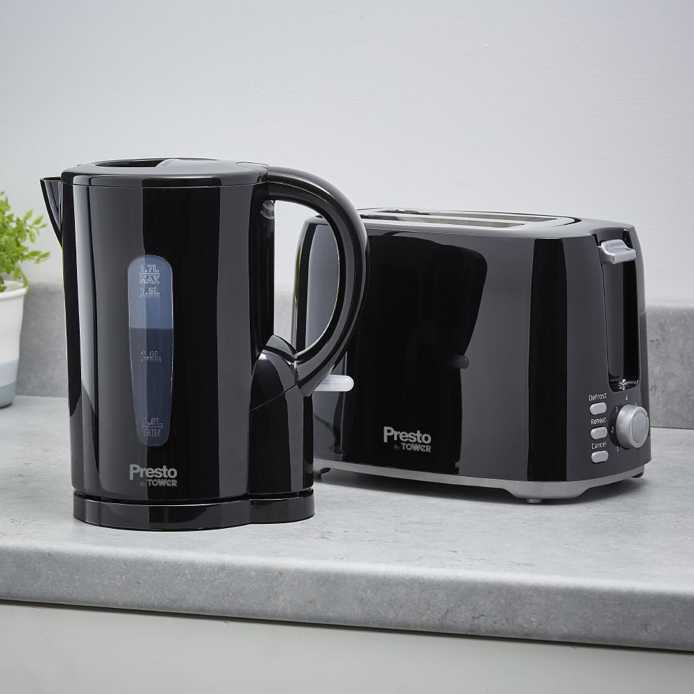 The historic Tower Presto range brings back its affordable and versatile products to people's homes, complete with contemporary features. This electric kettle has a 1.7 litre capacity that can make up to 7 cups from a single boil, so you can enjoy a nice brew with friends and family. The included filter can be detached which is easy to clean and maintain, ensuring the kettle continues to perform at its best. Also included is boil dry protection and automatic switch off, which provide added safety when in use. This Presto kettle is great little addition to the kitchen.