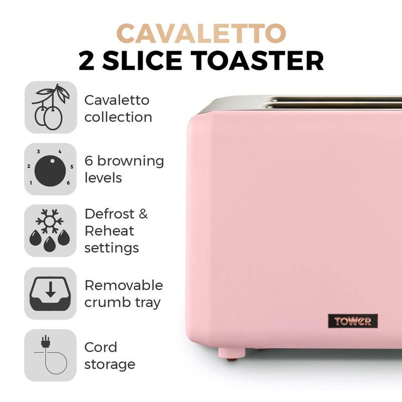 Tower T20036PNK Cavaletto 850W 2 Slice Toaster - Pink + Rose Gold