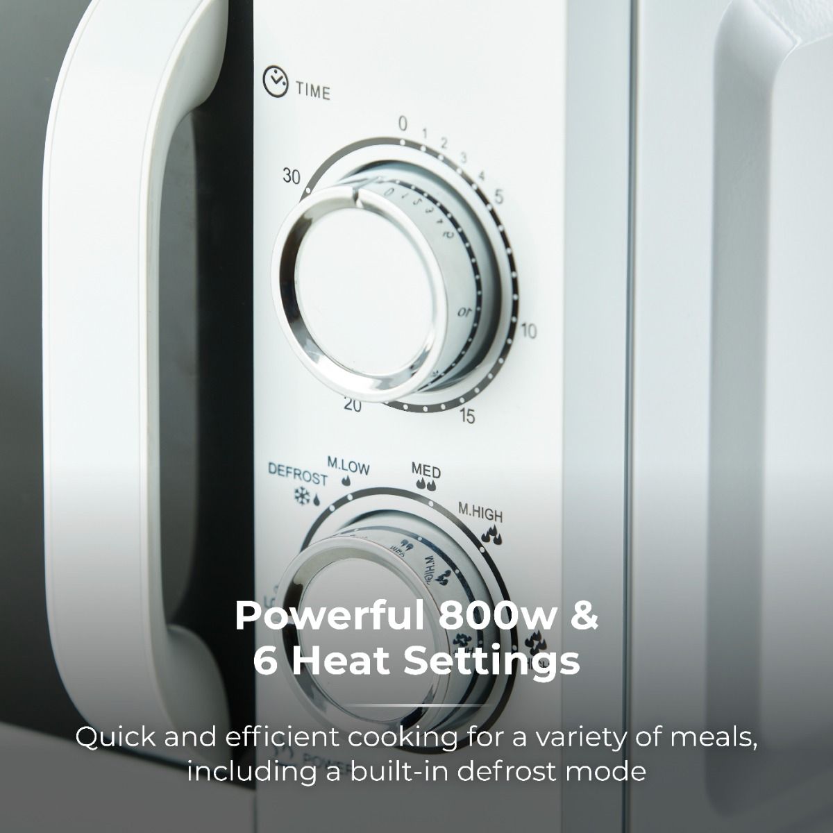 Powerful 800W for faster cooking/heating
